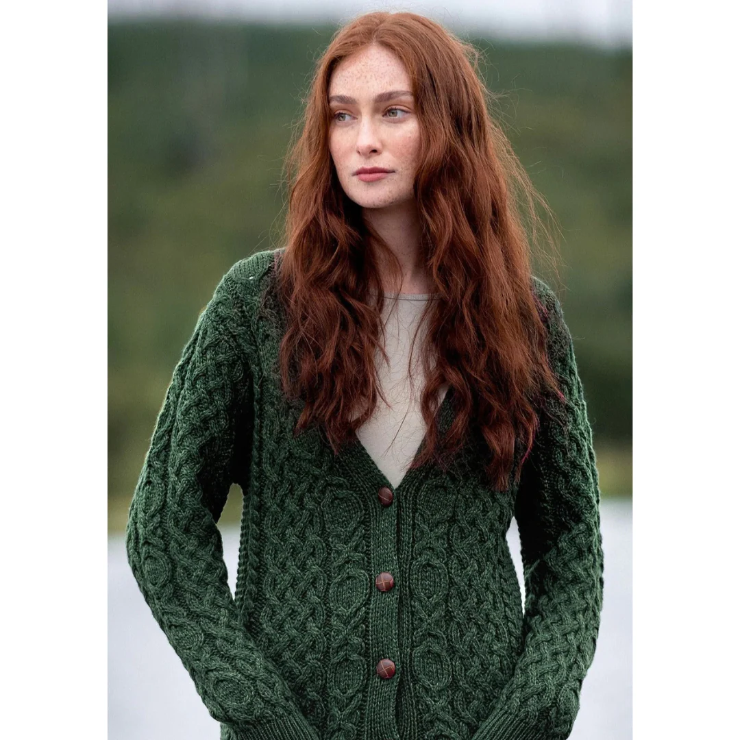 -70%Ladies Aran Green Boyfriend Cardigan—