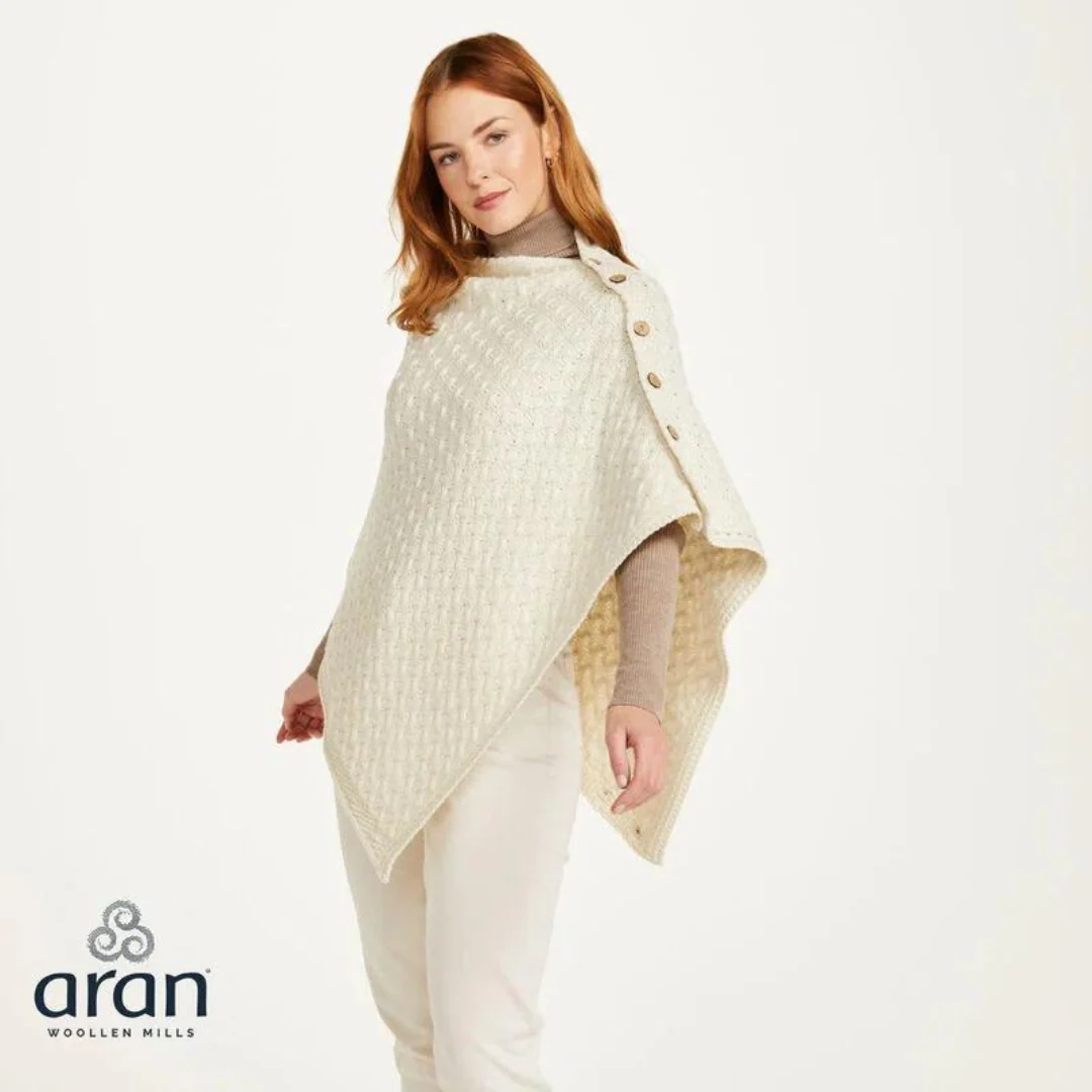 Ladies Aran Super Soft Merino Natural Poncho