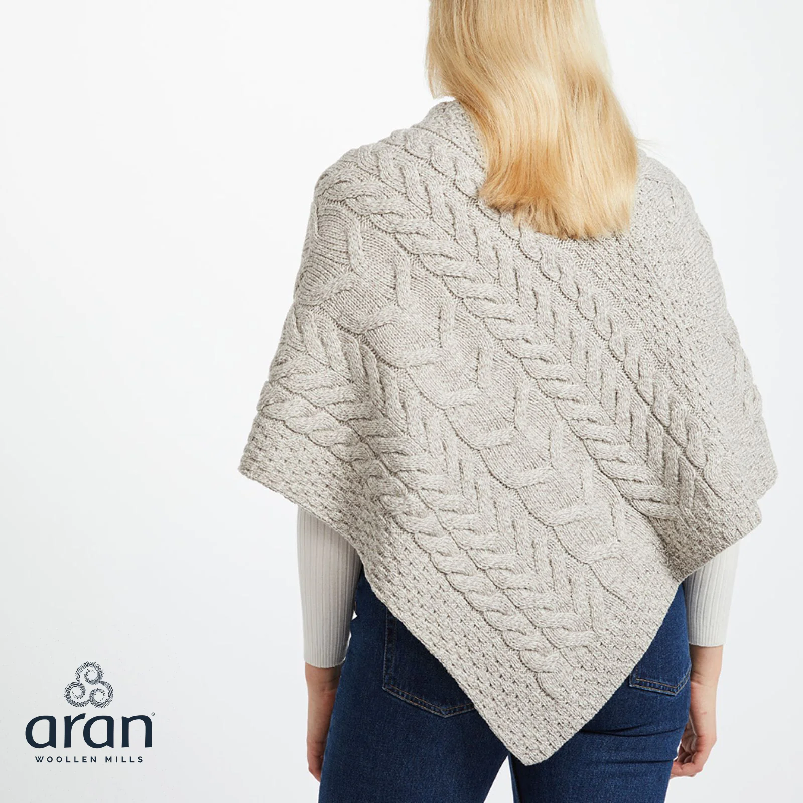 Ladies Aran Triangular Oatmeal Poncho