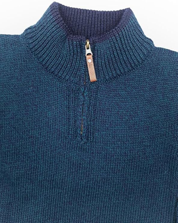 This sweater from Aran Crafts is made from 100% Pure New Wool, providing you with long lasting comfort. It features a 1/4 length zip with a leather pull, giving you the choice to wear it a little open or fully closed. Consisting of natural and organic fibers, this woolen wonder helps to regulate body temperature while maintaining its shape and offering a sophisticated yet luxurious look, this sweater makes for a great gift.