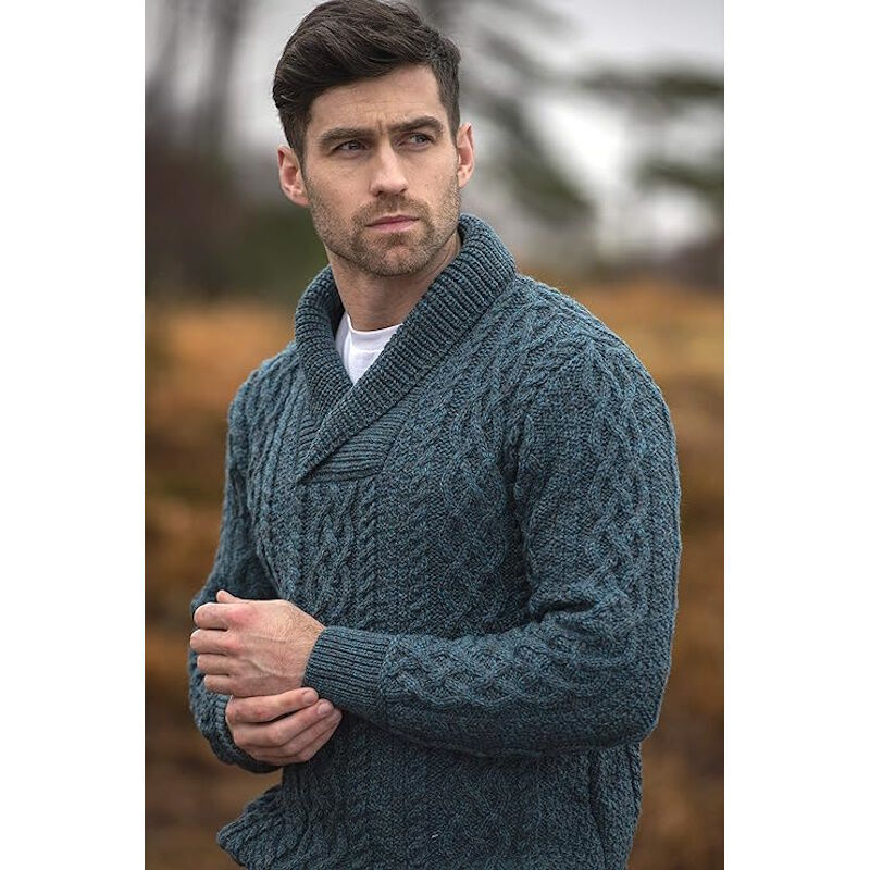Men's Bunratty Shawl Collar Aran Jumper Peacock—