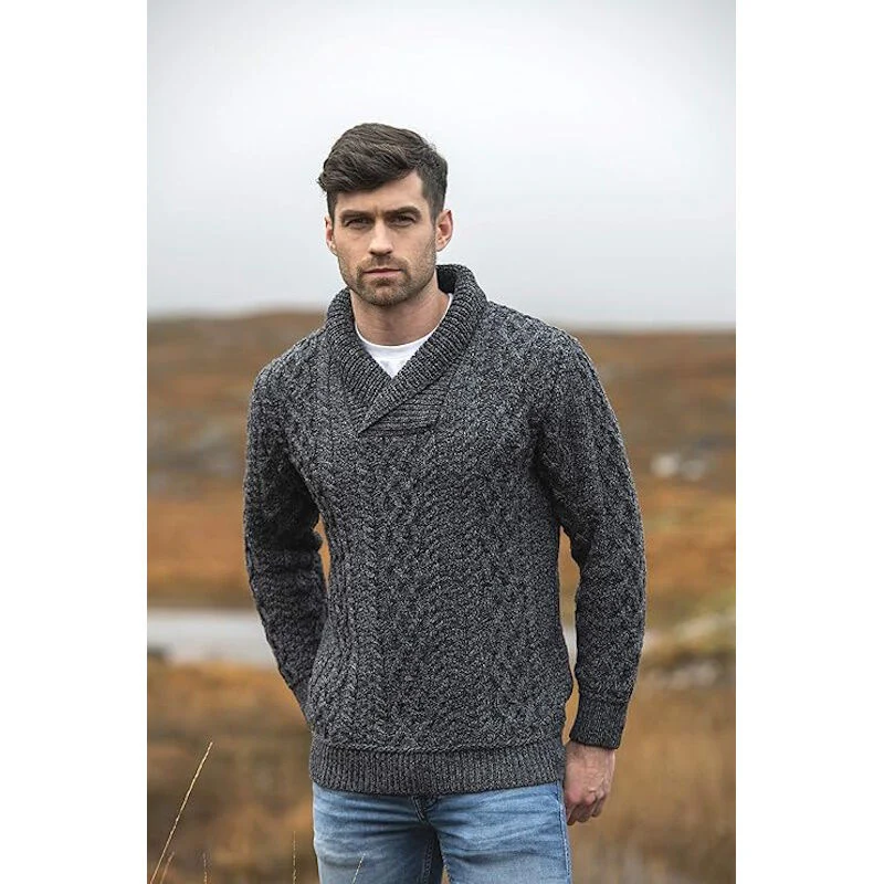 Men's Shawl Collar Aran Charcoal Jumper